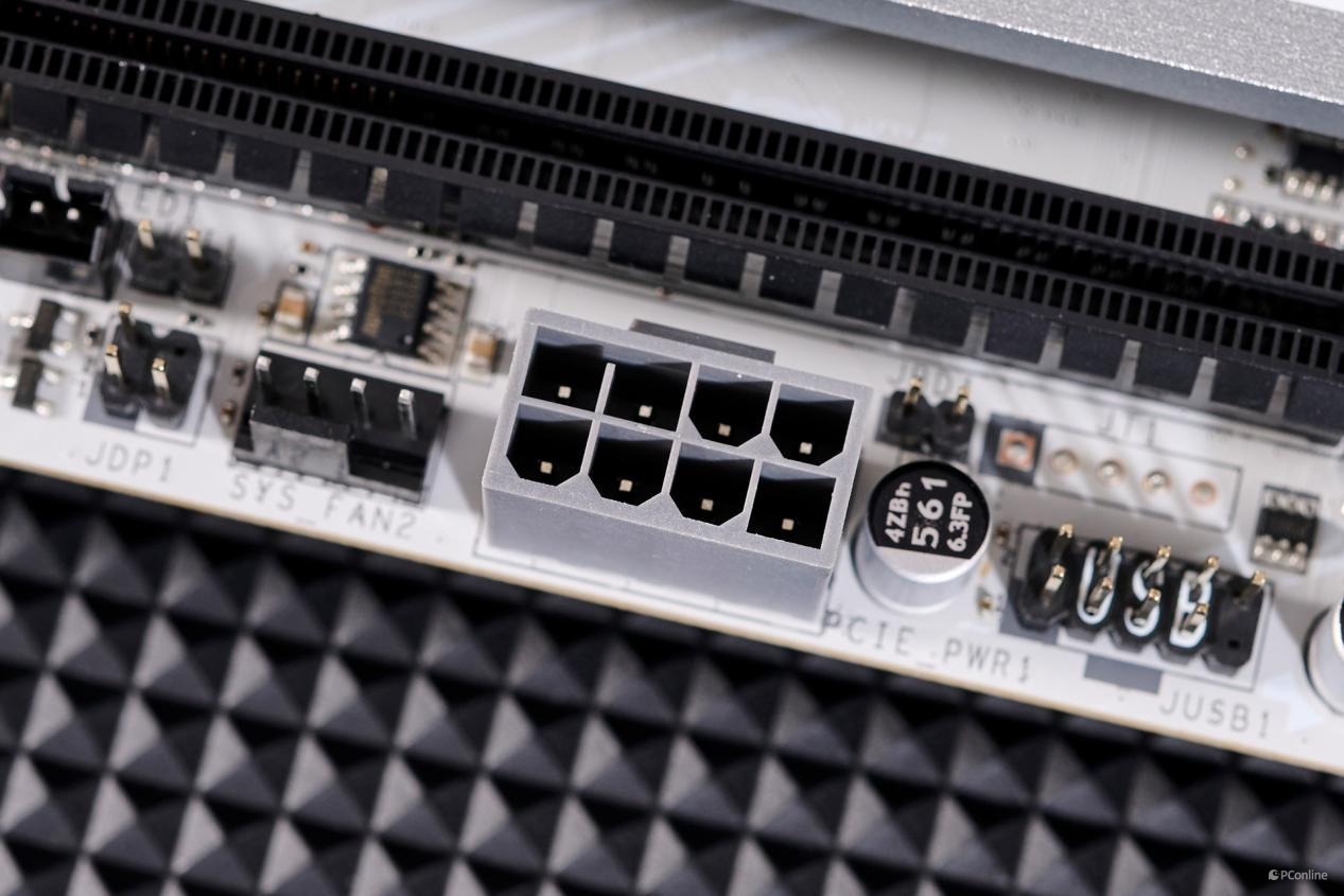 为满足新一代的PCIe 5.0供电需求,主板配备上了一个8Pin显卡辅助供电接口,可以为PCIe设备提供更充足的电量支持。