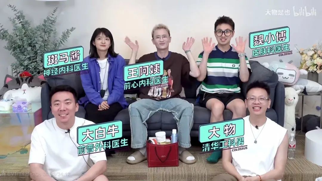 在@大物是也视频里,他们常常聚在沙发上,一面解答观众的健康问题,分享用药指南,一面输出医学观点,从医生角度探讨真实的医疗工作,或是推荐自用好物——可以说,这一内容模式天然离变现更近,具备商业化的基因。当涉及细分领域时,大物还会邀请其他科室的医生分享观点。