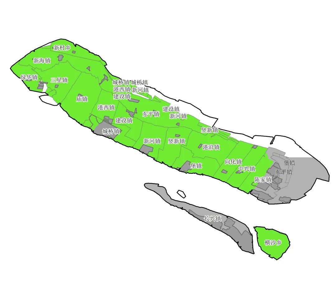 (一)长兴镇全域,陈家镇(北陈公路转北沿公路、G40通道、开港北路,北至园区南路以东镇域范围),城桥镇(北至南横引河,南至长江大堤,西至三沙洪河,东至淡云路、团城公路、民生竖河、南横引河)。其他14个乡镇(不含横沙乡)建成区。堡镇、东平镇东北飞地。东滩区域(合兴垦区北横引河段以南至长江大堤范围)。见下示意图(灰色部分为禁放区域)。