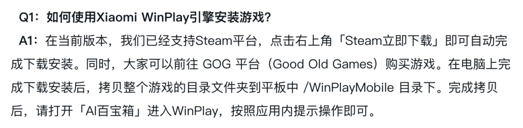 但是,小米表示,WinPlay 引擎已经支持 Steam 平台。