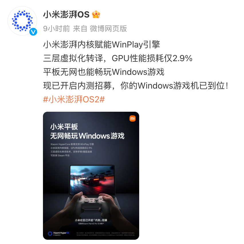 小米 WinPlay 引擎官宣