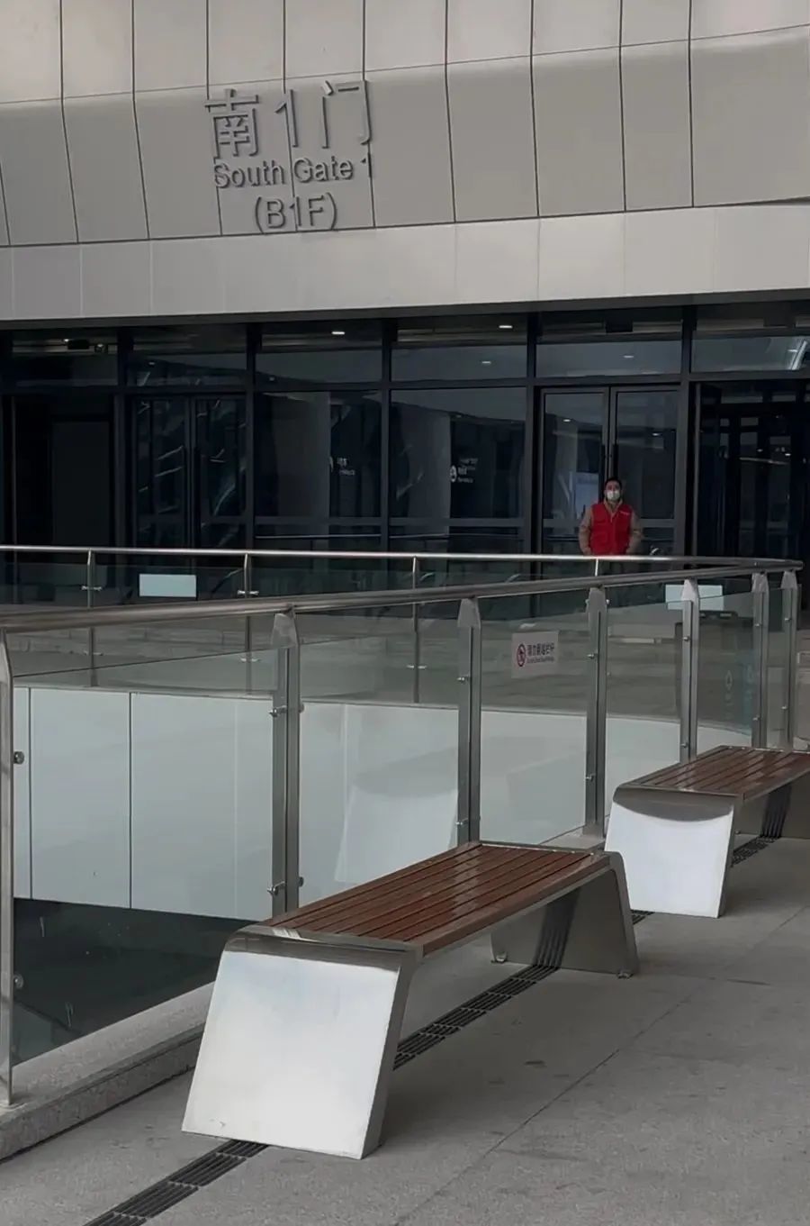 顺着南区的箭头走,记者很快便来到了一扇小门边,穿过这道门,便可见写着“南一门(B1F)”的入口。自此,指向南区具体位置的指示牌便仿佛“消失”了。硬着头皮,记者走进了这扇“南一门”,一路向内走去才发现,这一区域的左侧通向网约车上车点,右侧则通向地铁,目前仍未启用。在其中行走时,记者还遇到了几位同样迷茫的乘客,一位女士正开着手机导航寻找“南区”。