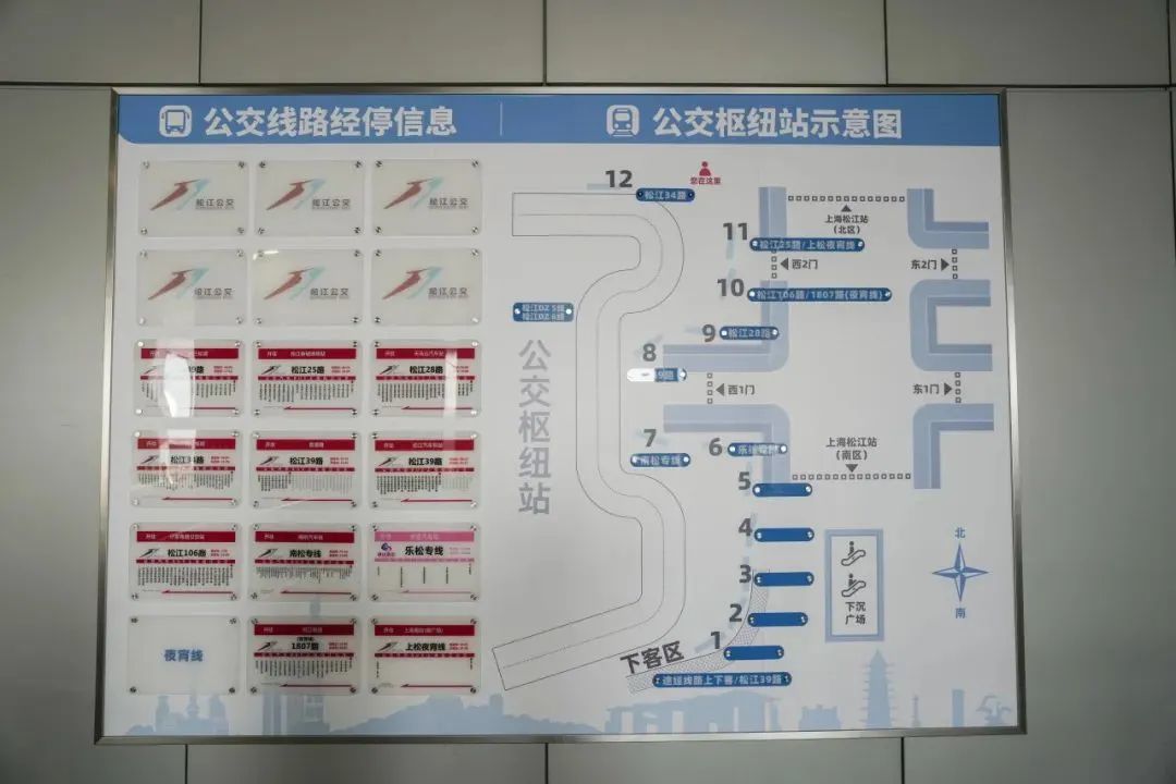 旅客可以在此换乘公交线(日间):1849路、松江25路、松江28路、松江34路、松江39路(开往贵德路)、松江39路(开往松江汽车站)、松江106路、南松专线、乐松专线;