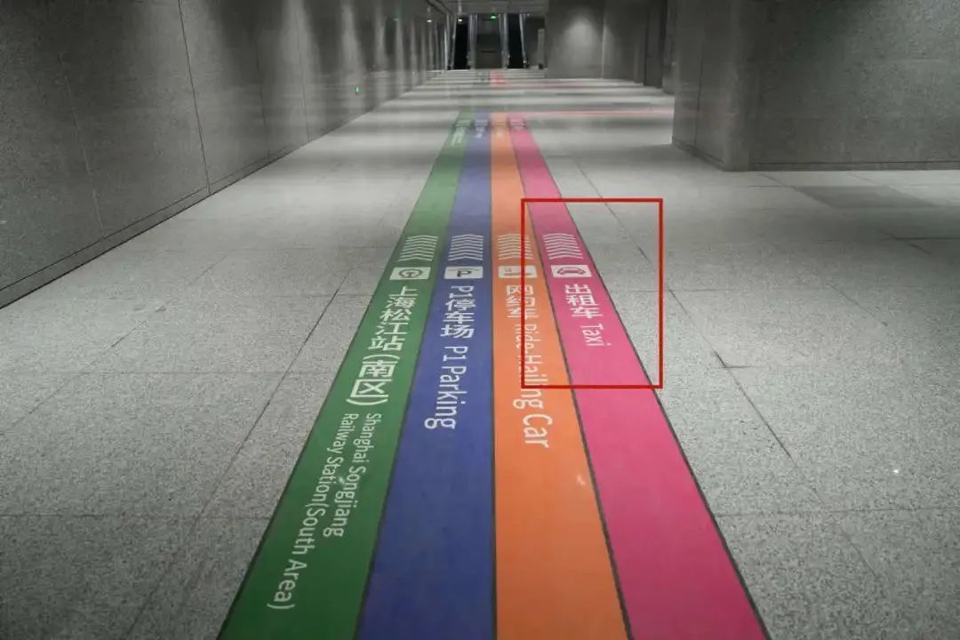 旅客从南区出站后,沿着通道步行,即可看到地铁上海松江站站的出入口。