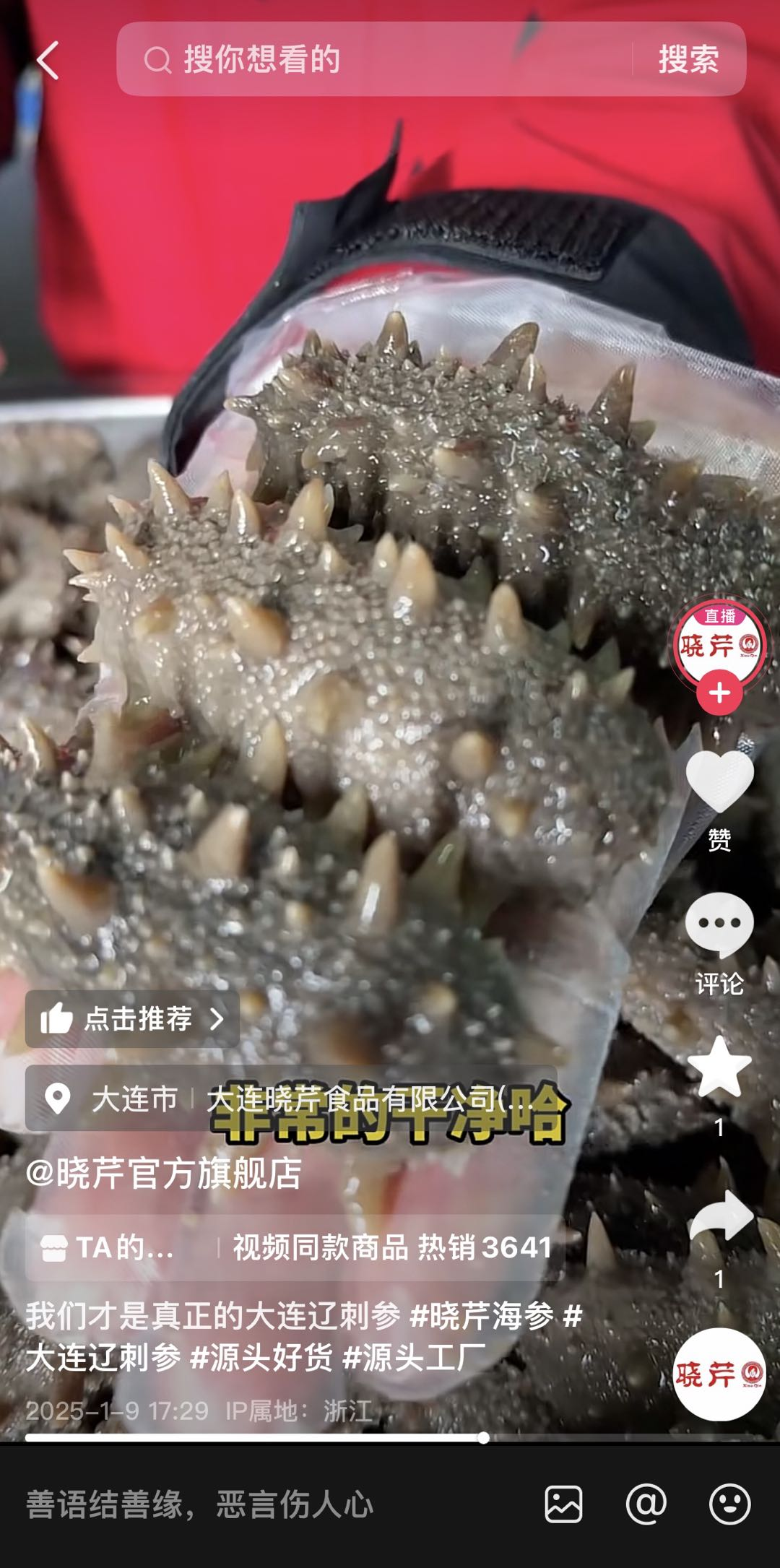 不同的是,这次,官方很快“出手”了。2024年12月,抖音电商发布了海参品类治理新规,规定不得虚假宣传海参产地、养殖方式等,并对劣质低价、以次充好、恶意扰乱市场的行为进行治理,提前规避“劣币驱逐良币”的现象。
