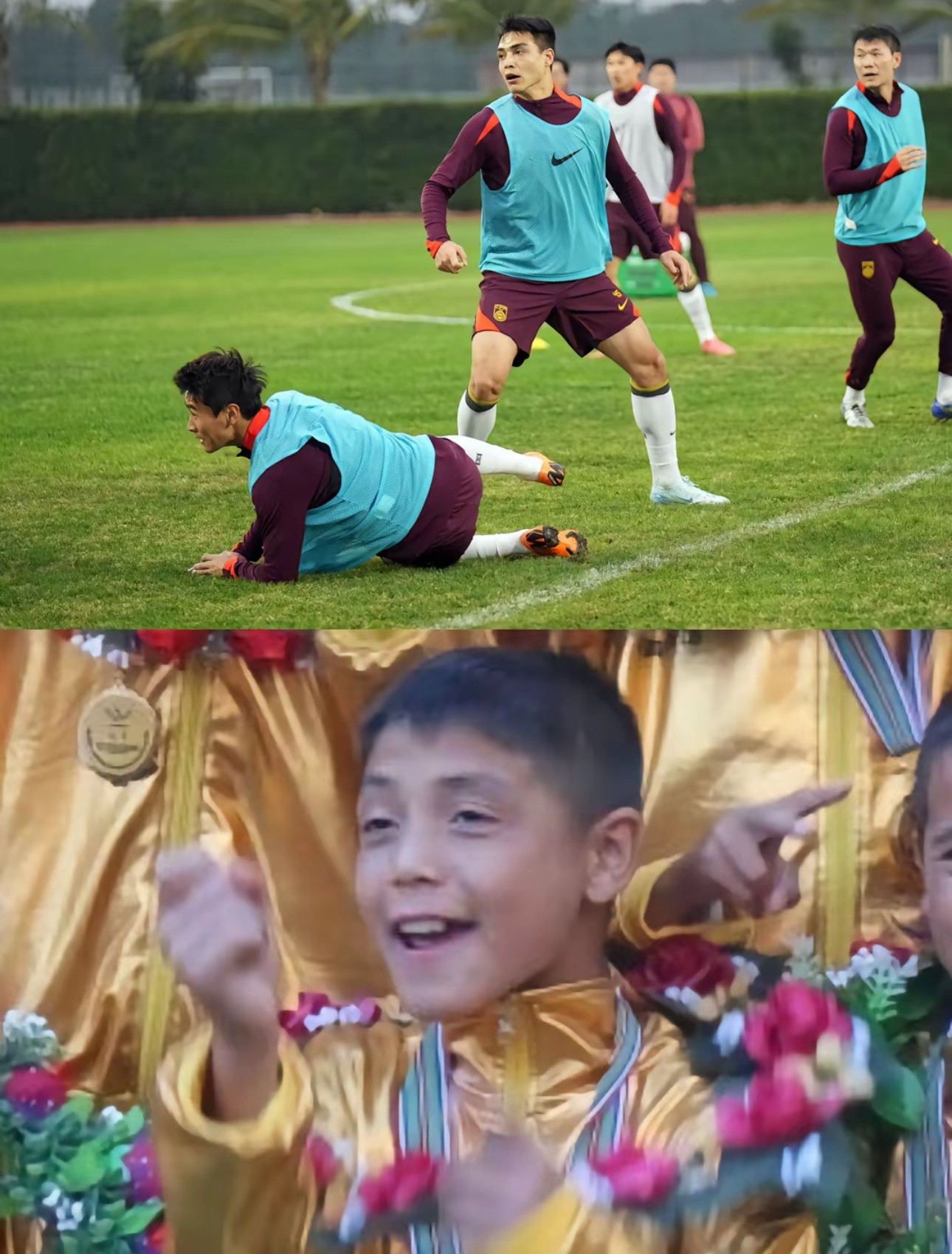 吾米提江:“大概五六岁的时候,邻居家的哥哥们组成了一个小队,每天都会踢球。我家里人对足球没什么概念,但他们从来没有阻止我踢球。我十二岁也就是小学毕业的时候,真正接触系统训练。一开始就是喜欢踢,后来长大一点发现踢球还能成为职业,成为谋生的技能,踢好了就能养家糊口,所以,我就选择了这条路,为了自己,也为了给家里带来更好的生活。可能大家会觉得,我因为家庭,压力很大,但实际上,这是我的动力,激励我往前再往前。”