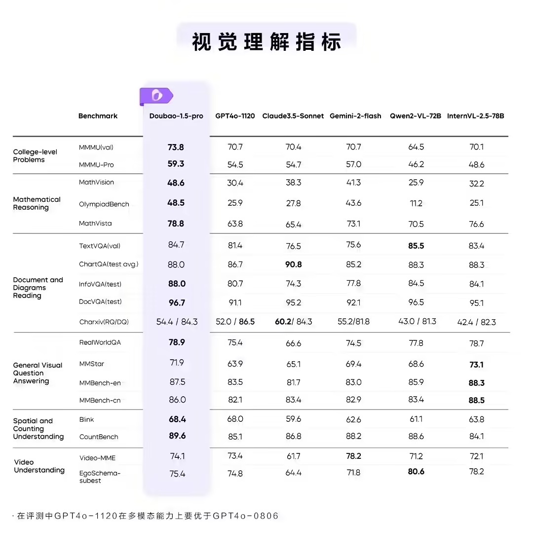 新版豆包视觉理解模型 Doubao-1.5-vision-pro、豆包实时语音模型 Doubao-1.5-realtime-voice-pro 一同发布。
