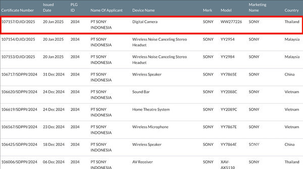 【CNMO科技消息】2025年很可能是相机行业让人兴奋的一年。CNMO从日媒获悉,索尼新款全画幅混合相机“ Sony A7 V ”将发布的可能性越来越大。目前已确认,一款疑似A7 V的机型已在印尼认证机构数据库中注册。