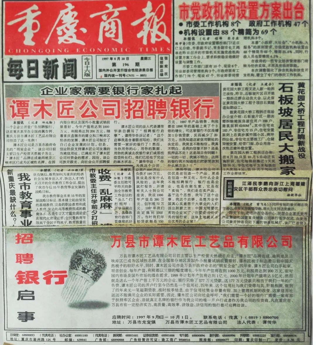 1997年,谭传华在《重庆商报》刊登“招聘银行”广告