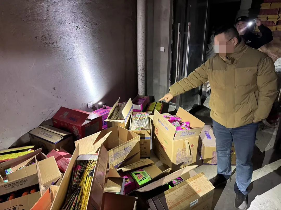 1月14日,肥西县公安局紫蓬山派出所民警在日常工作中发现,辖区某市场一门面房内非法存储有320件烟花爆竹,准备用于春节销售,民警现场依法予以扣押。随即安排专用车辆进行安全转运,并将嫌疑人何某带回派出所进一步调查。