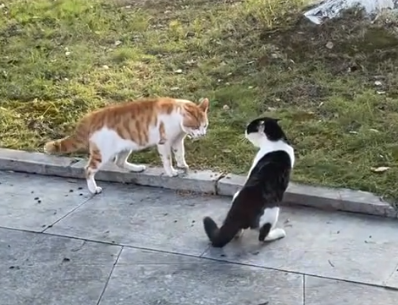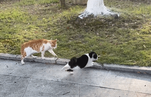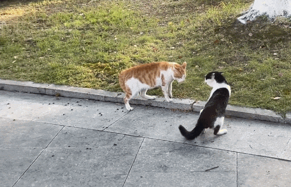 不久前,小姐姐@是我. 在校园里发现两只猫正在对骂。