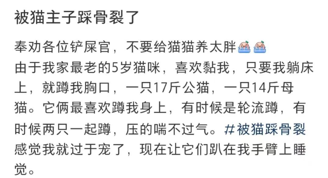 小姐姐家中有两只小猫咪,一只公猫17斤,一只母猫14斤。