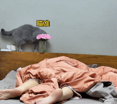就在“不经意”的扒拉下,花瓶离铲屎官的脑袋越来越近。