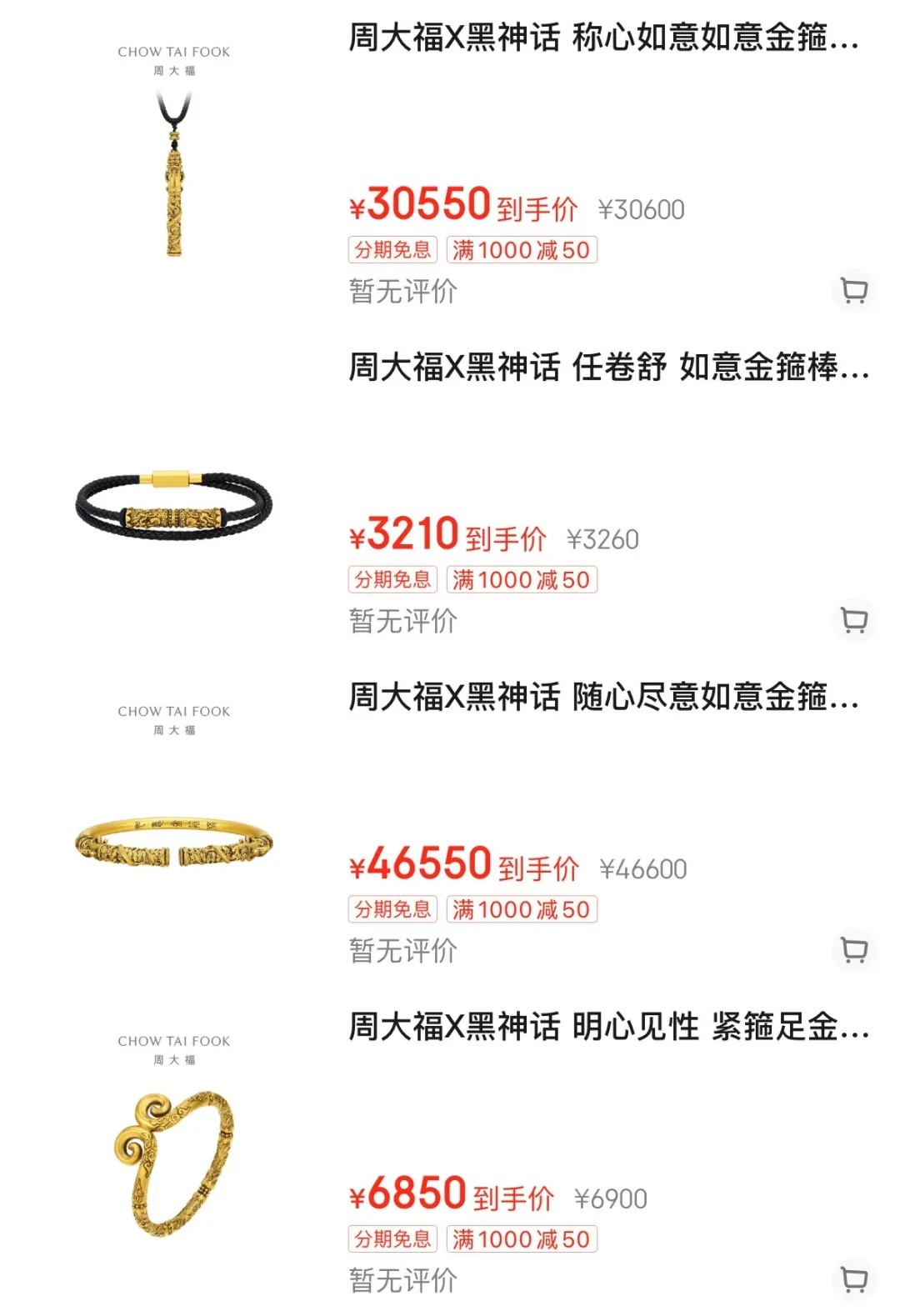 近日,《黑神话:悟空》官方与周大福联名推出了黄金制品。