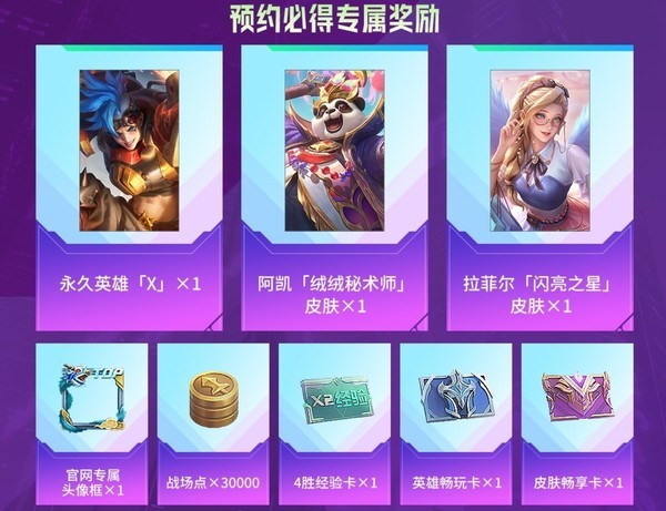 《决胜巅峰》开服加公测的福利可以说是拉满,非常有诚意,进游戏甚至感觉有些眼花缭乱。一句话总结就是“首赛季70+英雄、130+皮肤,免费获取、永久使用”。预约游戏必得专属奖励,永久英雄X、阿凯绒绒秘术师皮肤、拉菲尔闪亮之星皮肤,此外还有专属头像框、战场点、4胜经验卡、英雄畅玩卡、皮肤畅享卡。另外还有预约里程碑奖励,也有英雄可以选择。