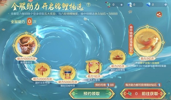 为了给国服玩家带来熟悉的体验,《决胜巅峰》还推出了新英雄[悟空]。1月23日-1月28日,完成[锦狐裘]活动任务获得[集运助力结]参与全服助力,达成1000万助力目标即可免费领取新英雄[悟空]。此外,达到3亿助力目标可解锁[春暖冰开跃锦鲤],1月28日除夕当天登录参与锦鲤抽奖,全服瓜分50亿钻石奖励。抽奖时间段内(20:15-23:45)保持在线最多可获8次中奖机会,最高可得58888钻石奖励。在互联网平台看春晚抽奖吸引用户的使用,《决胜巅峰》以游戏的方式要抢用户,这就很考验玩家的忠诚度了。