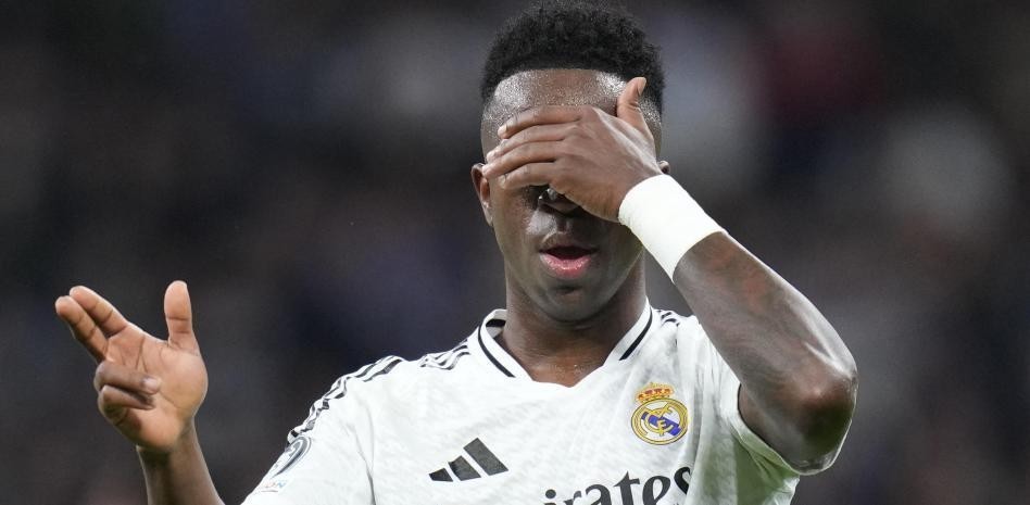 维尼修斯在欧冠比赛中为皇家马德里攻入了五个进球中的两个。在第一个进球时,这位巴西球员用双手做出了“100”手势,庆祝自己为皇家马德里打入的100个进球。