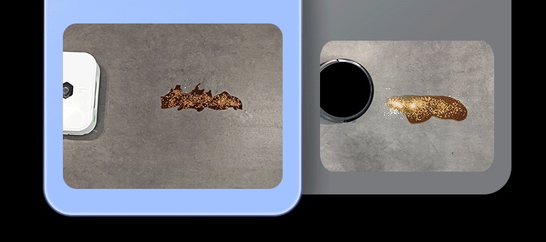 遇到顽固的污渍,如飞溅的汤汁印,萤石RX30 Max也能自动识别并加大出水量,充分溶解、软化污渍,并执行实时三遍复拖,彻底去除污渍。