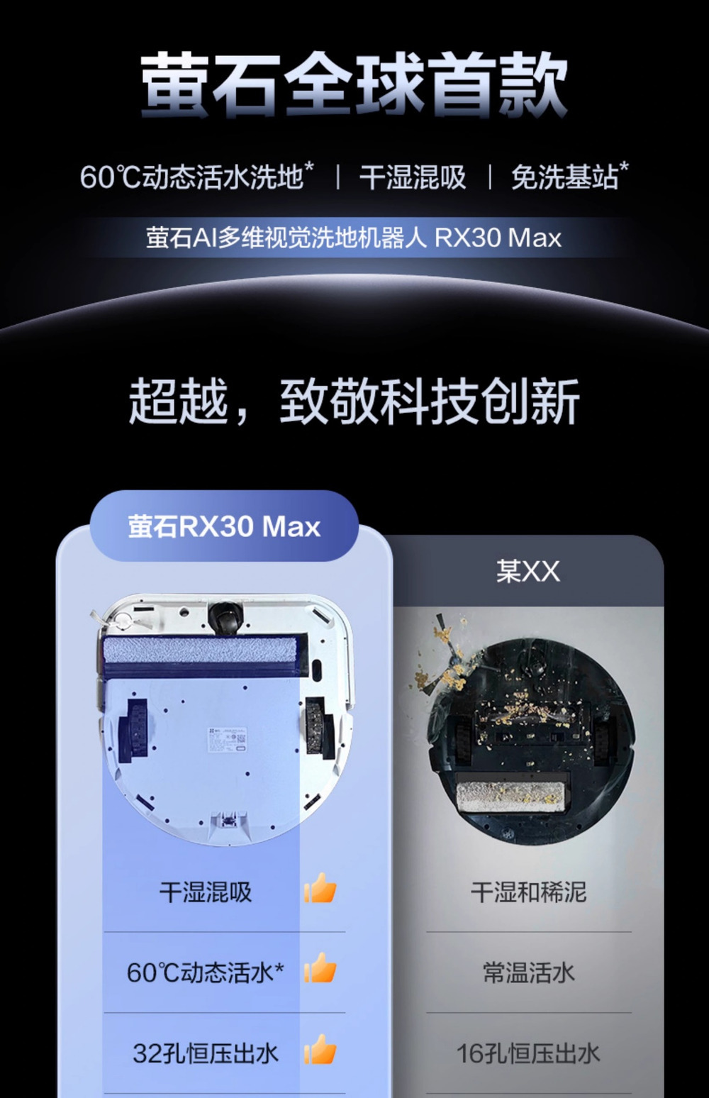 而这次,萤石RX30 Max AI多维视觉洗地机器人再次击中消费者心趴,作为旗下首款可以吸泡面的机器人,带来了全天候恒净基站,一举解决日常拖地不干净、拖布受污染、基站洗拖布底座需要清洁的老问题,引领洗地机器人进入干湿混吸新时代。