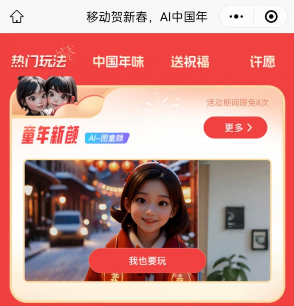 值此新春新气象,中国移动官宣上线AI春节新玩法,用饱含温情的数智AI,让蛇年春节年味“热腾腾”。