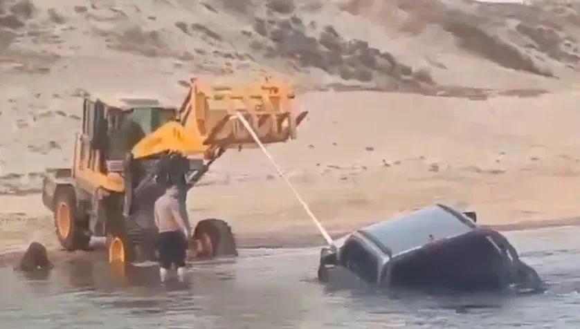 网传现场视频显示,在水中的越野车从车头入水到整车沉没不超过30秒。