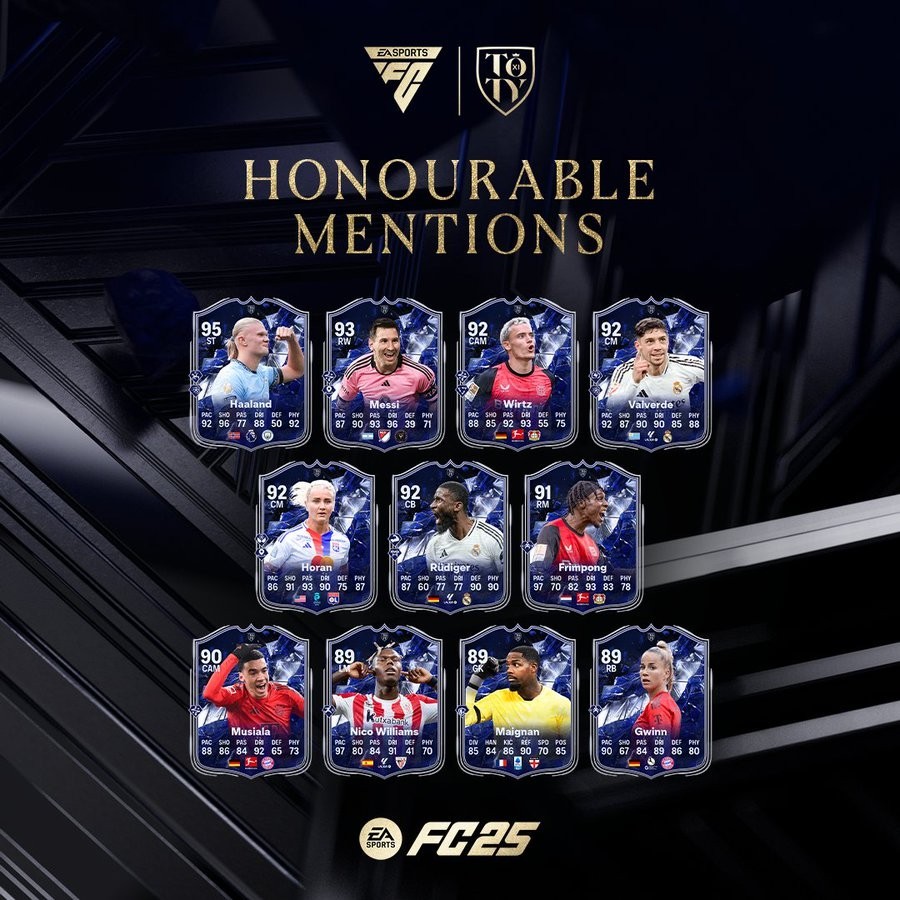 《FC25》在今夜凌晨上线了年度最佳阵容荣誉提名,其中,维尔茨、吕迪格、哈兰德、梅西、巴尔韦德在列。