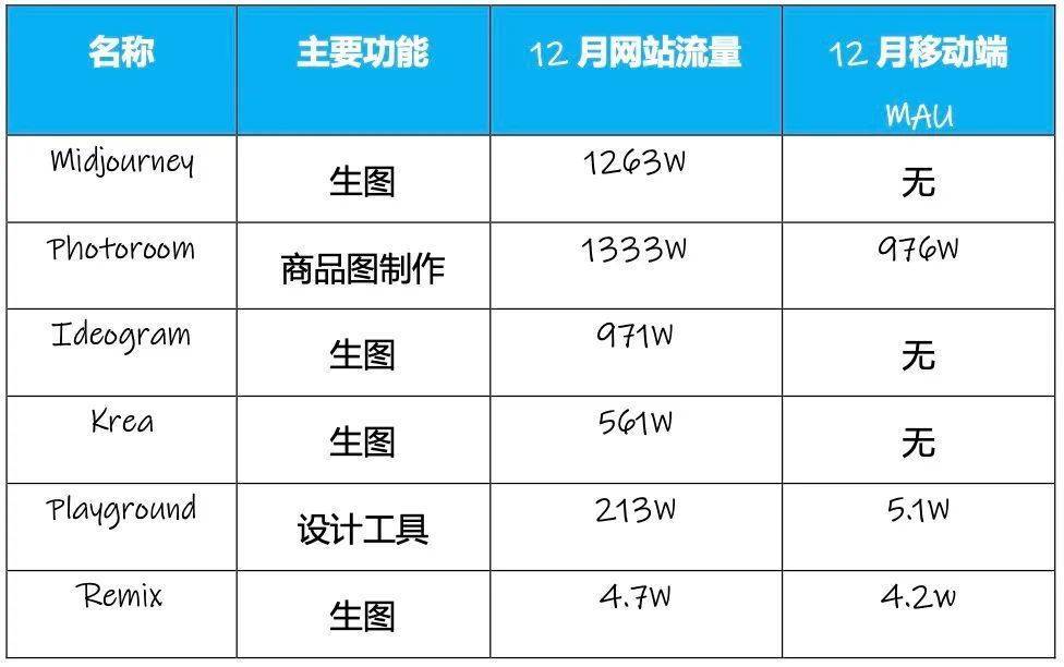 注:目前一些生图产品中会包含生视频功能,但如果该产品以生图功能为主,就会被划归生图类别,而例如可灵、Runway等以视频为主,兼有生图功能的产品,则会在下文中进行介绍。