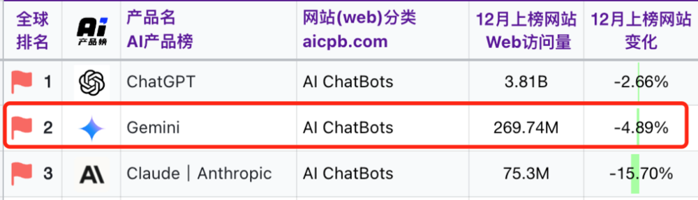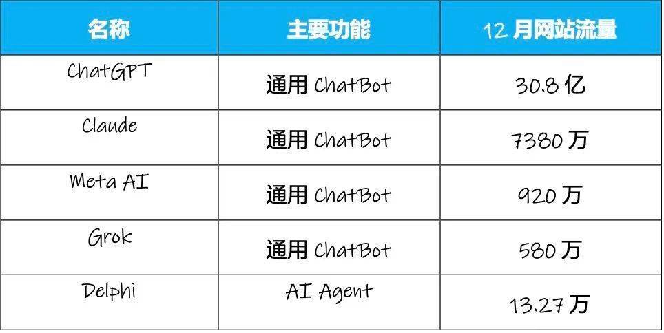 12月ChatBot流量榜单Top3|图片来源:AI产品榜