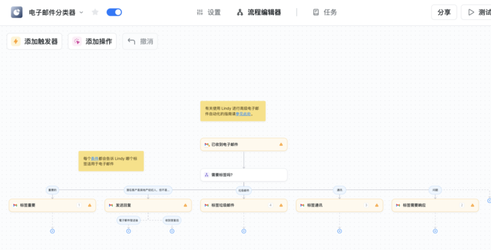 主要功能:Lindy是一款面向工作场景的AI效率工具,提供多样化的功能,Lindy的主要区别在于为用户提供了流程编辑器,编辑自己的工作流,并让AI完成相关任务,简化工作量。目前Lindy提供100多个工作流模板,主要针对会议、营销、内容创作等场景。