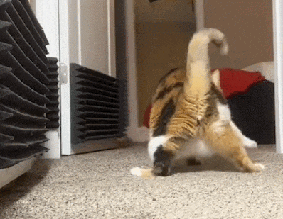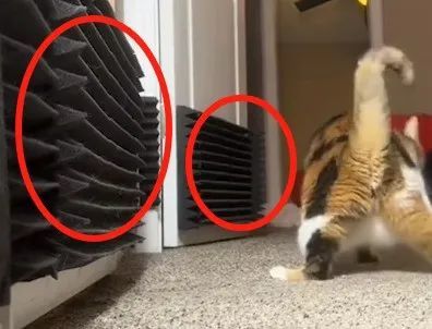你看边边角角的黑色物体,就是她特意安装的防撞条,刚好就是三花猫的身高。