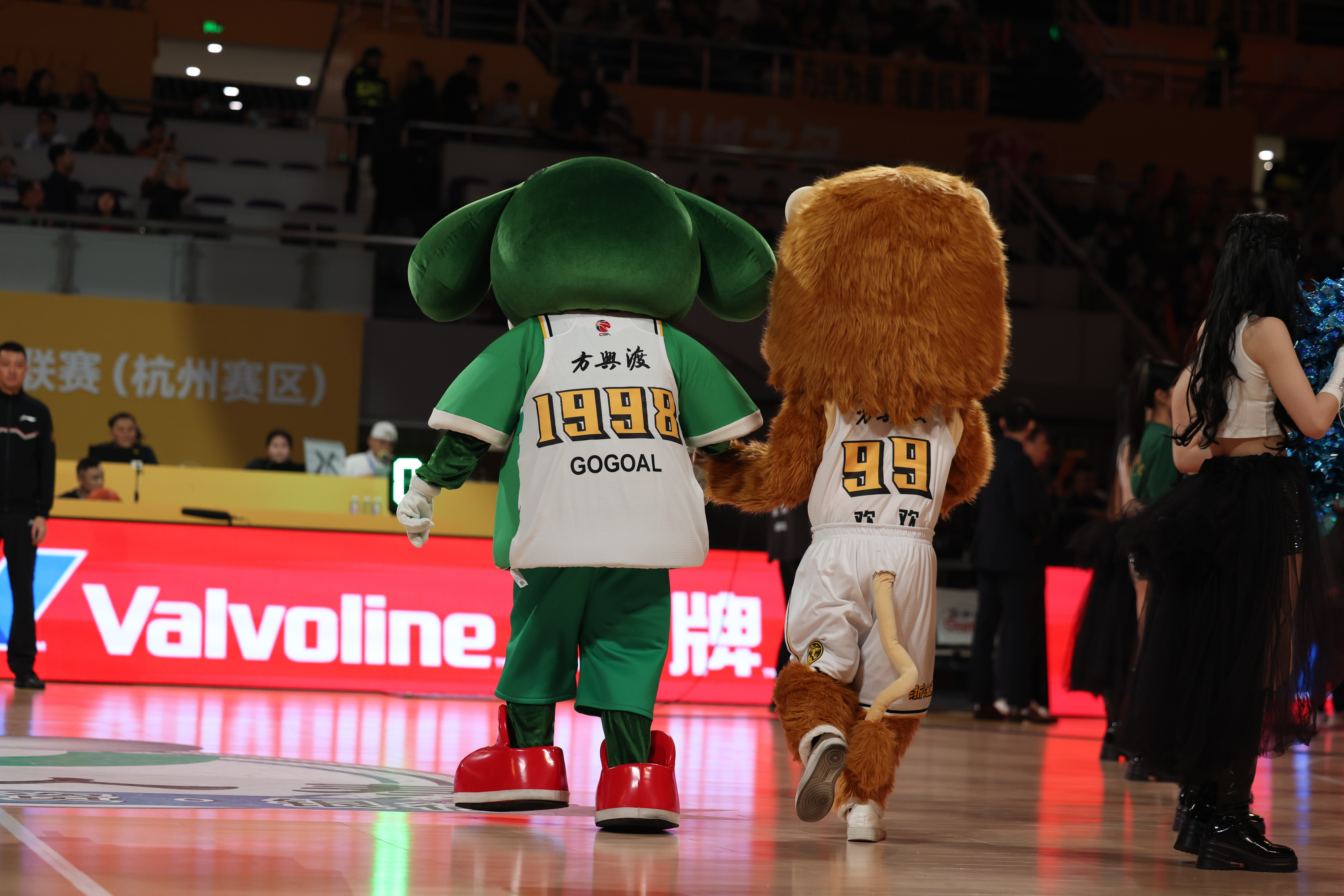北京时间1月23日,浙江广厦男篮主场108-93击败辽宁男篮,在比赛开始前,浙江队的吉祥物GOGOAL造访了广厦男篮主场。