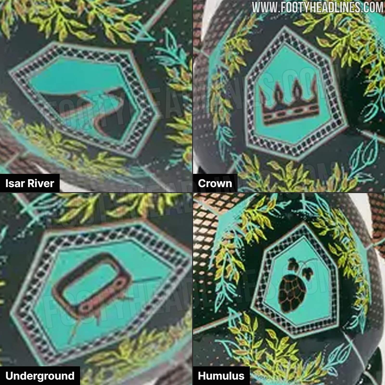 北京时间1月25日,足球装备网站Footy Headlines曝光了本赛季欧冠联赛决赛用球,该球整体呈翠绿色调且有图标象征慕尼黑和巴伐利亚。