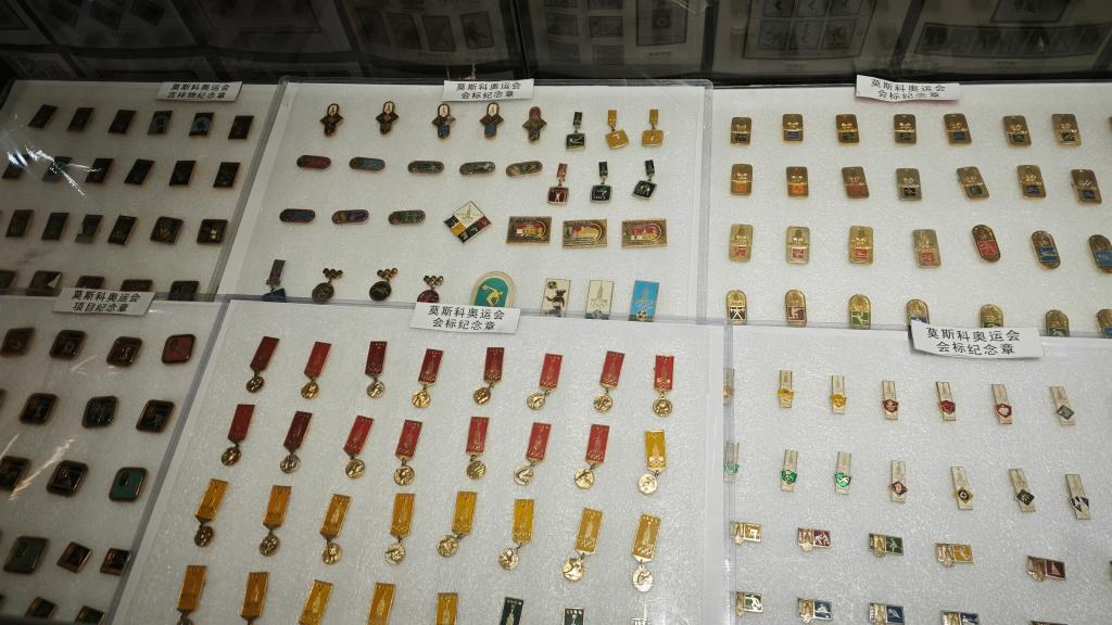 随着哈尔滨亚冬会临近,巴洛克博物馆里展出了有关夏季和冬季奥运会的徽章、邮票等纪念品,还有冰刀鞋、滑雪板等老物件,最早可追溯到1924年第一届冬奥会。这些藏品的主人名叫刘昌。