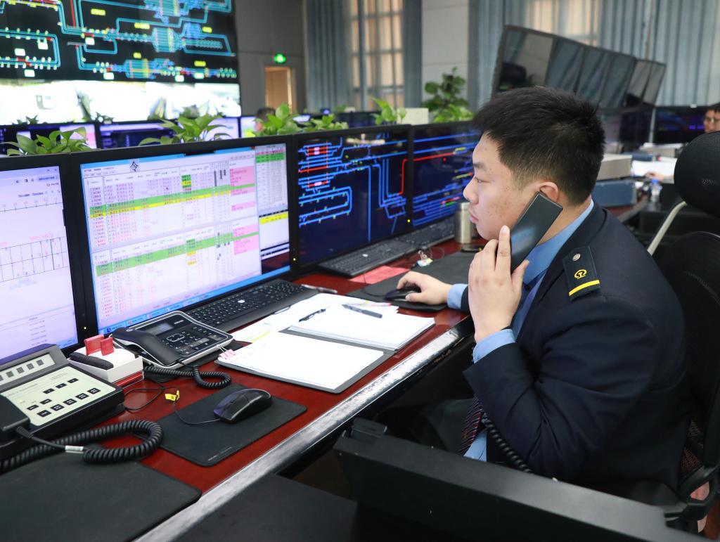 通过调度指挥监控大屏幕,可以清晰地看到,山海关站运转场内一列列载满电煤、汽油、粮食等物资的列车蓄势待发。“每天下午都是最忙的时候。春运期间,山海关站运转场货运列车开启‘大满贯’模式,我们得时刻加强与北京、沈阳两局的沟通。”刘淼说。