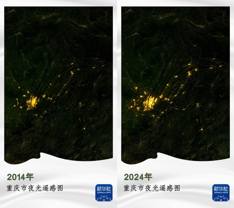 卫星提取到的人类夜间生产生活的灯光影像数据又称为“夜光指数”,能有效反映地区生产总值的变化。从山城到“不夜城”,背后是重庆经济发展水平的跃升。十年来,重庆夜光指数越来越高。