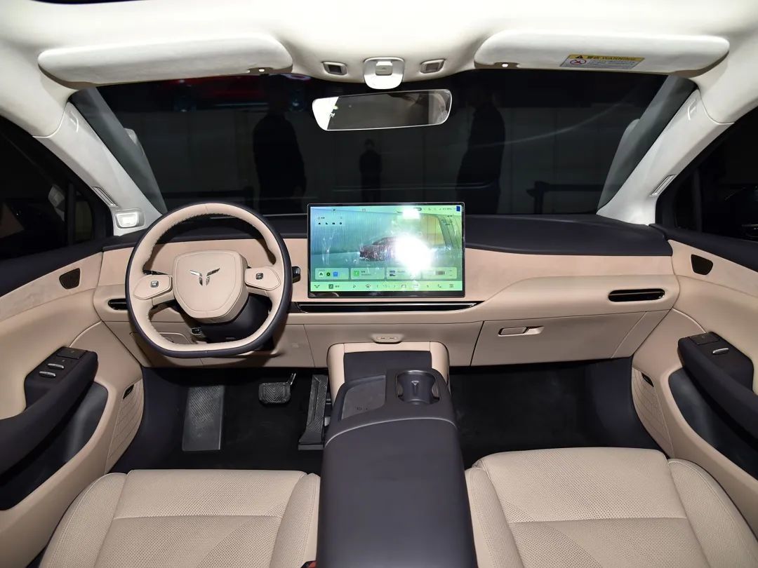 内饰方面,天工05车内采用双色搭配,中控台造型为全新设计风格,与红旗EH7、天工08使用的连体屏布局有所不同。此外,天工05不提供实体液晶仪表盘,可通过抬头显示进行车辆信息呈现。