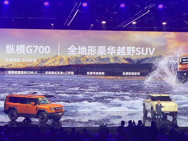 而纵横G700则是一款全地形豪华越野SUV,搭载鲲鹏超能混动CDM-O系统,采用非承载式车身、三把锁、8255智能座舱、纵横乾崑智驾;至于纵横F700作为全地形豪华多功能皮卡,配备智能全地形模式、3.5T硬核拖挂,车一体式侧围,设计跳出了皮卡局限,极有未来感,非常有观赏性。