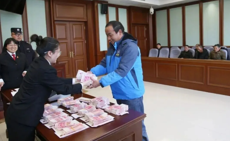 1月6日,铜陵市铜官区法院对一批涉及14名劳动者的劳动争议案件举行案款集中发放活动,现场发放执行案款47万元,切实将他们用辛勤汗水换来的欠条兑现成了手中的“真金白银”。