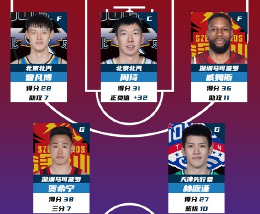 深圳球员贺希宁以单场38分的数据领衔得分榜;