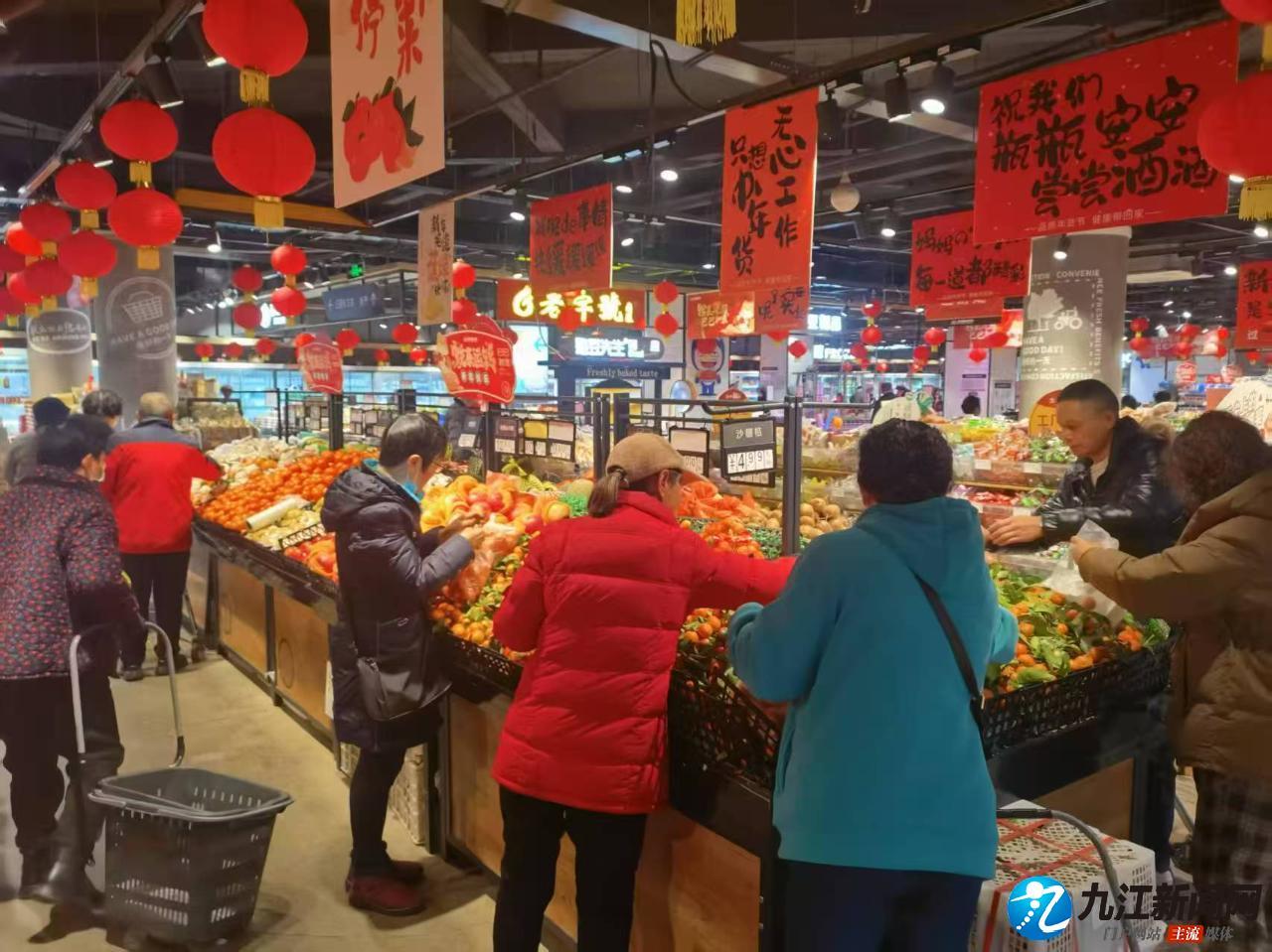 九江新闻网讯(九江日报全媒记者 陈芳 文/摄) 春节临近,年味渐浓,浔城各大商场超市、农贸市场纷纷提前备足货源,应对春节期间消费需求。目前,我市各类蔬菜、粮油、肉类、果类等储备供应充足,价格稳定。