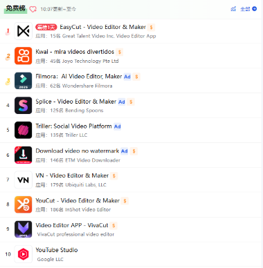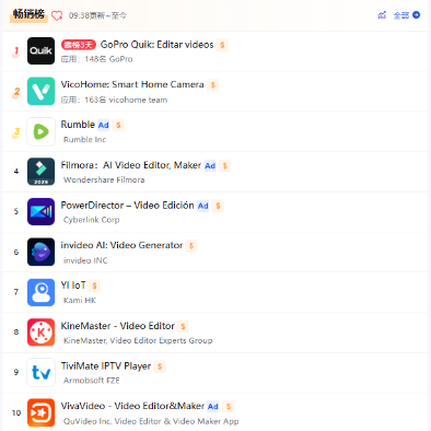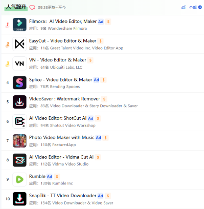据sensor tower数据,AIGC软件A股上市公司万兴科技(300624.SZ)旗下明星视频创意软件Wondershare Filmora美国地区双平台收入大幅提升,1月19日-21日环比激增超400%;同时,Wondershare Filmora近期在Google Play相关榜单取得佳绩,诸如在video players & editors人气榜上荣登榜首(Top1),在video players & editors中位列第三(Top3),并在video players & editors 畅销榜上占据第四(Top4)。