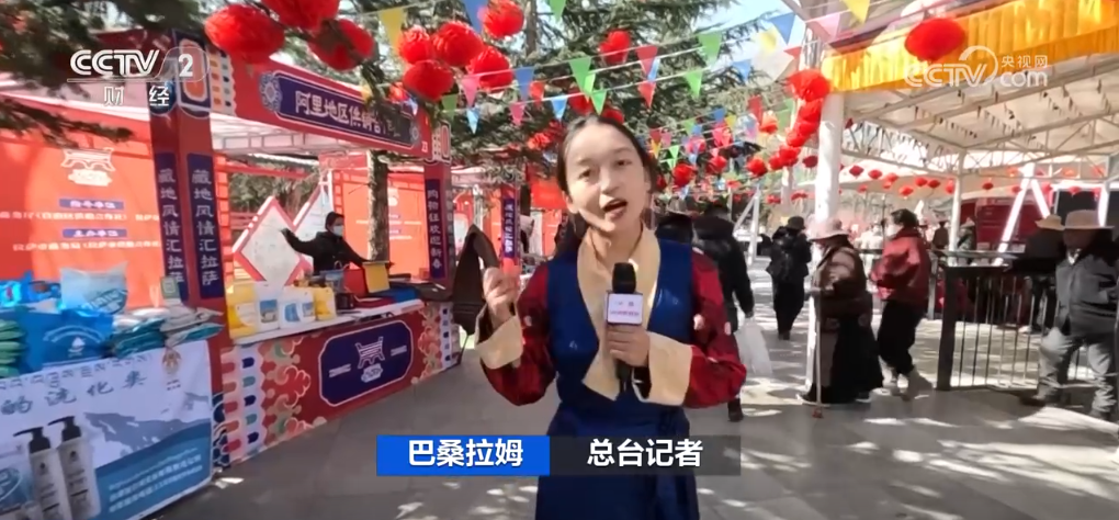 记者来到了宗角禄康公园年货市场。据了解,这里有30个摊位,来自西藏七地市的农特产品在这里进行展销。大家在这里置办完了年货之外,可以在这边跳锅庄。
