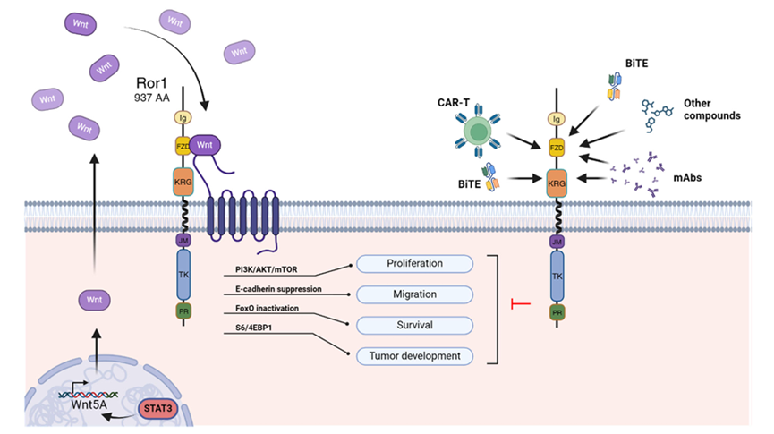 ROR1 在多种血液恶性肿瘤中过表达,与肿瘤发生、发展和耐药性相关,是潜在的治疗靶点。