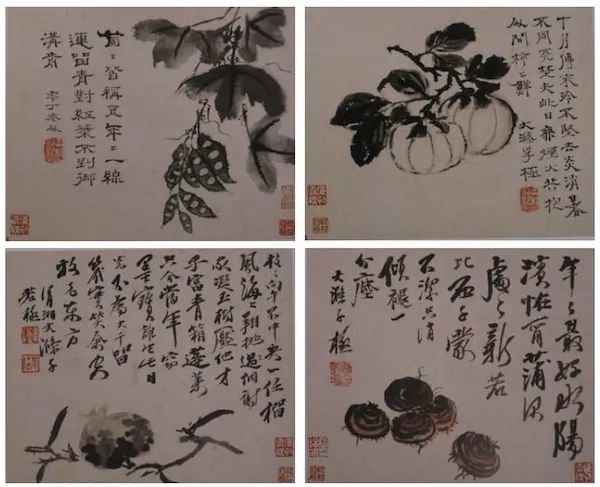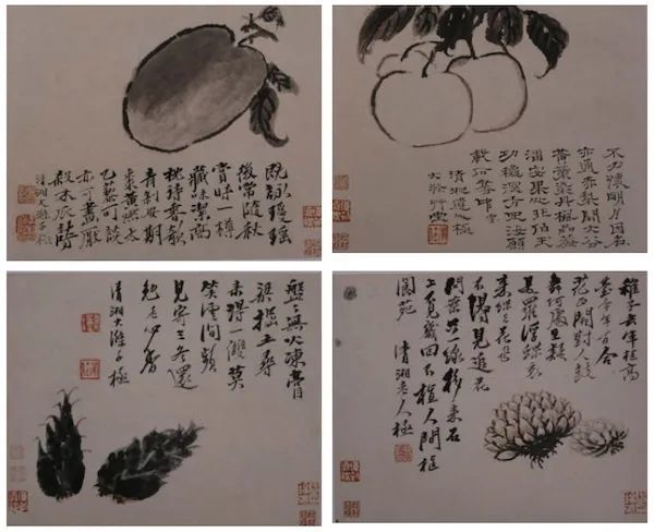 上海博物馆藏石涛一蔬果图册,共八开,其中第七开有云:“稚子去年植高台,今年百合花正开。对人鼓舞何处至,疑是罗浮蝶里来。”款署“清湘老人极”,是其晚年作品。诗中所言“稚子去年植高台”,似乎证明石涛有了子嗣。
