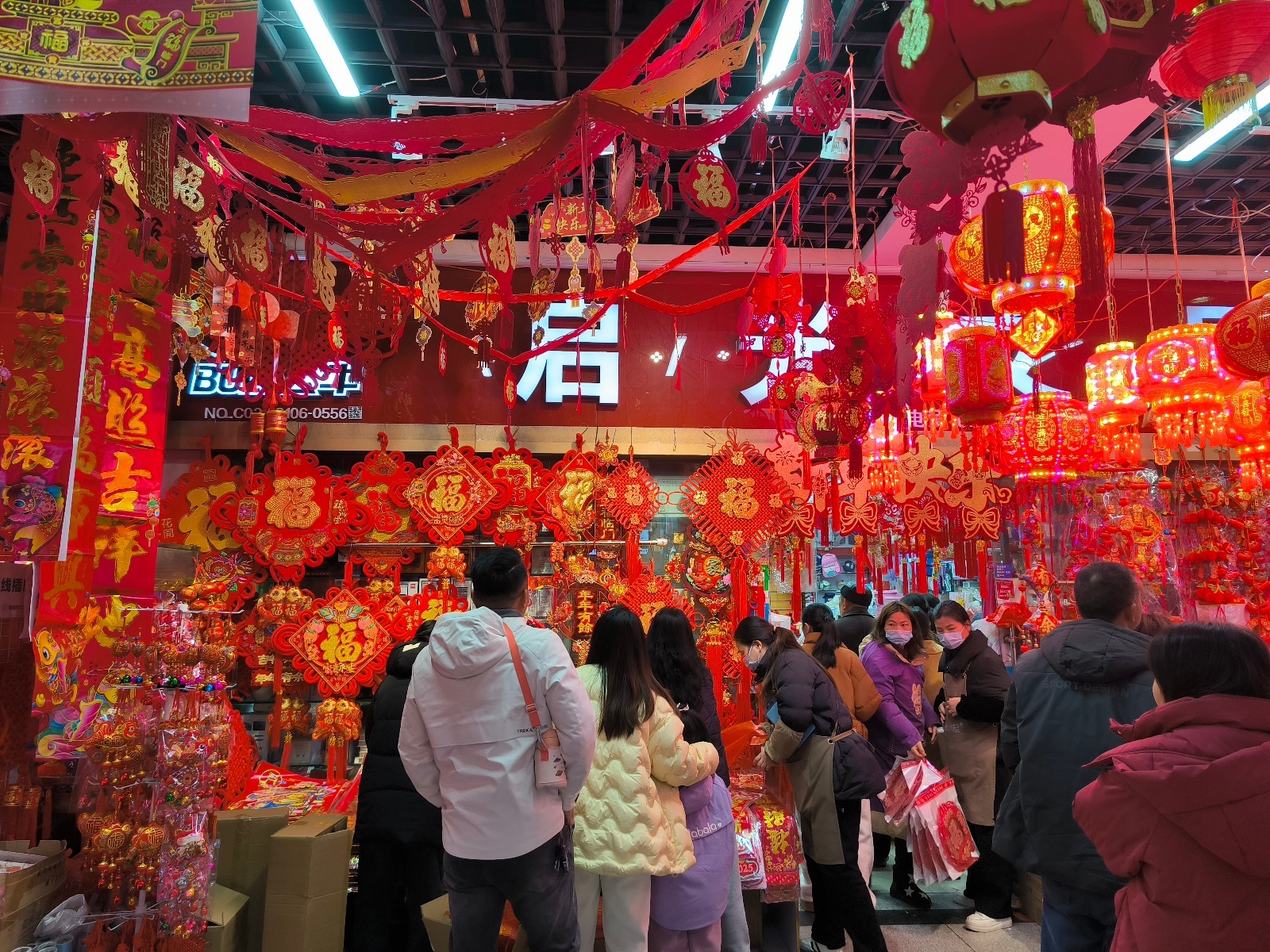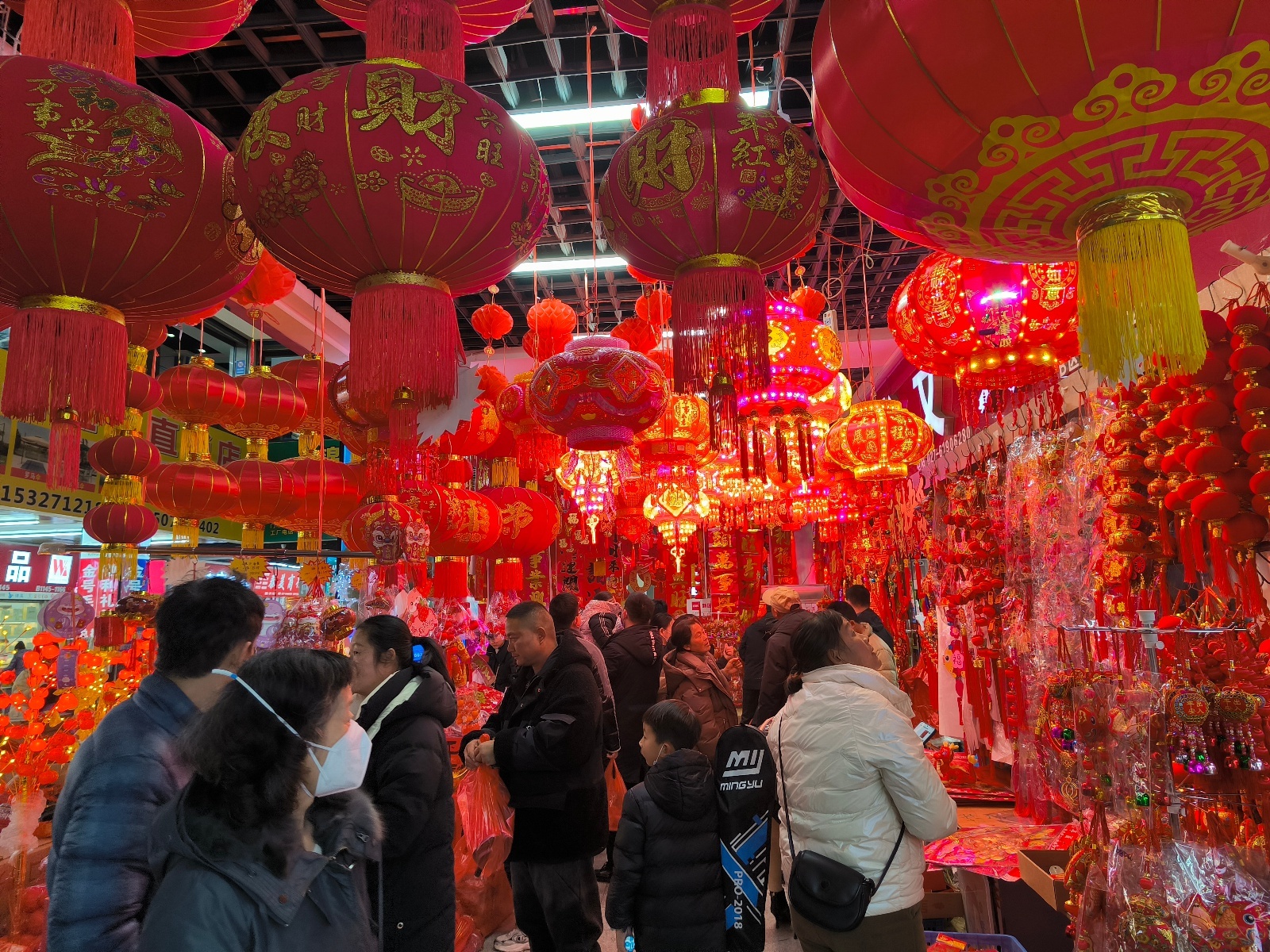 特别引人注目的是新春装饰品区,这里聚集了最多的市民,大家兴致勃勃地挑选对联、灯笼和各种挂件。一位市民表示:“这些喜庆的小物件最能代表过年的味道,一挂在家,新年的氛围就来了。”