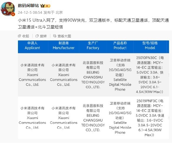 另外还将会有卫星通信版本,标配天通卫星通话,顶配16+1TB版本将独享天通卫星通话+北斗卫星短信。小米15 Ultra还支持90W有线快充、50W无线充,电池容量也对比前代有所提升。