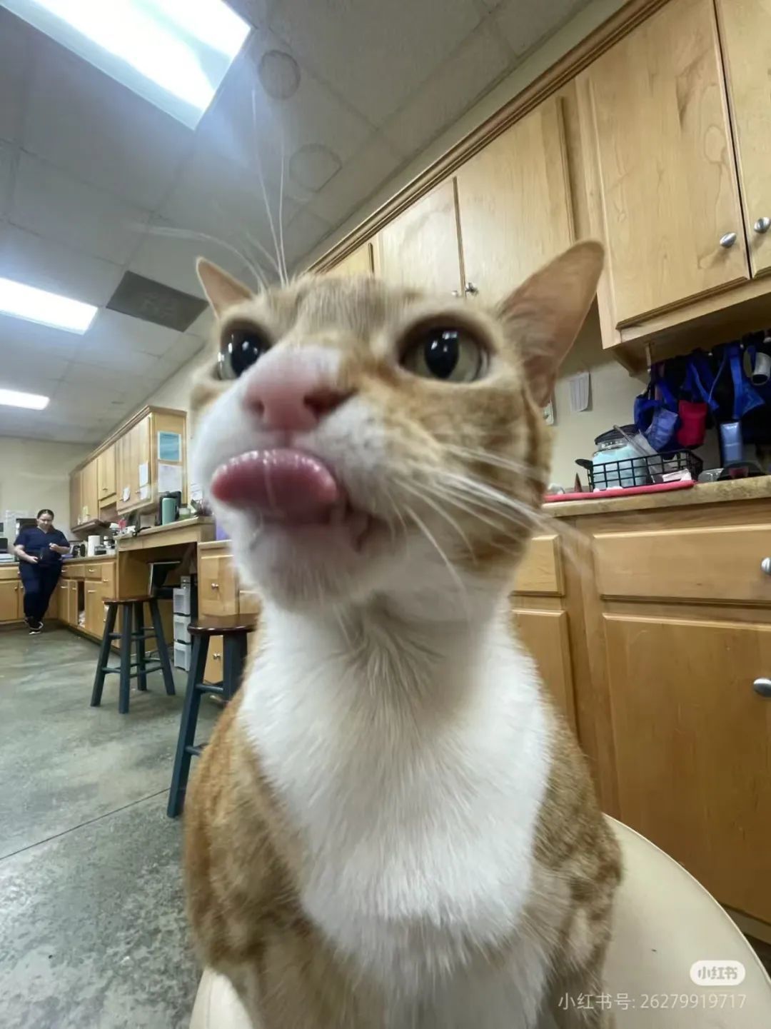 不过正经介绍,小家伙名叫Finley,是兽医姐姐的猫。