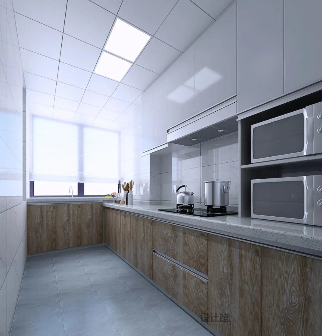厨房与卫生间的吊顶,可以选铝扣板与石膏板,我个人是比较建议装铝扣板的,毕竟厨卫空间潮湿、油污大,铝扣板比较方便后期维护;当然如果你比较追求空间的美观效果,那么也可以自主选择石膏板。