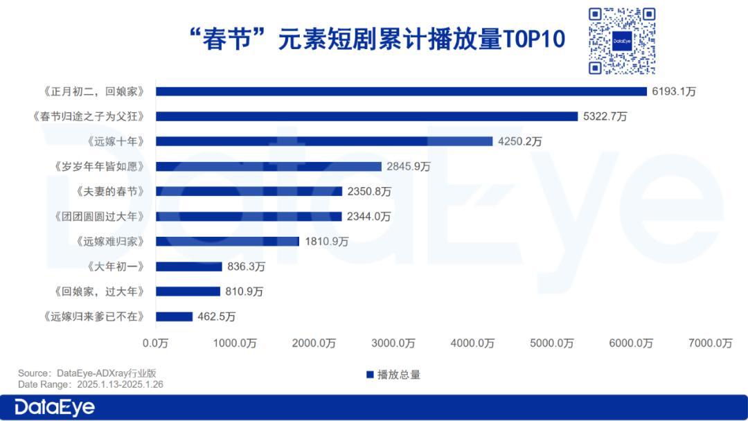 而从家庭、逆袭、情感题材来看,围绕“春节”展开的短剧,已经上线的共有47部,主要围绕着“回娘家、乡村邻里、婆媳关系、合家欢……”等热点话题展开。