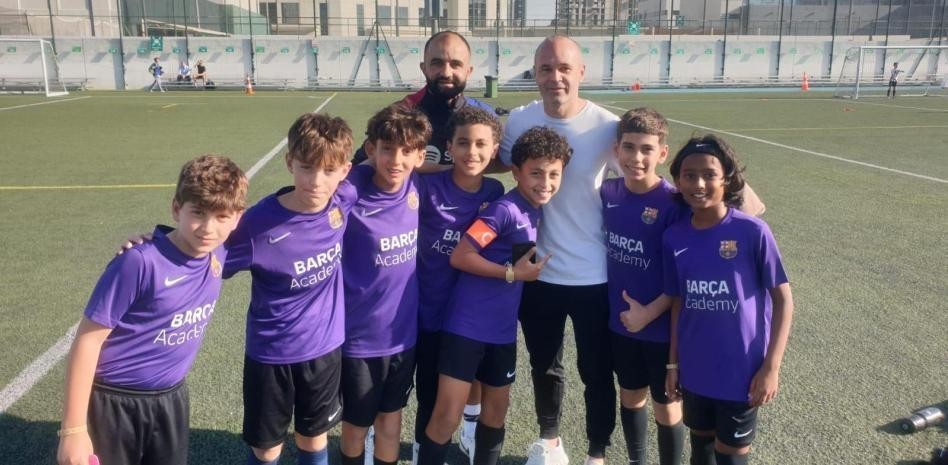 在阿联酋期间,伊涅斯塔还与巴萨迪拜青训学院有过交集,并与他们合影留念。目前,巴萨青训学院在全球范围内拥有52个项目,遍布五大洲的56个国家,吸引了超过45000名儿童参与其推广的各项活动。